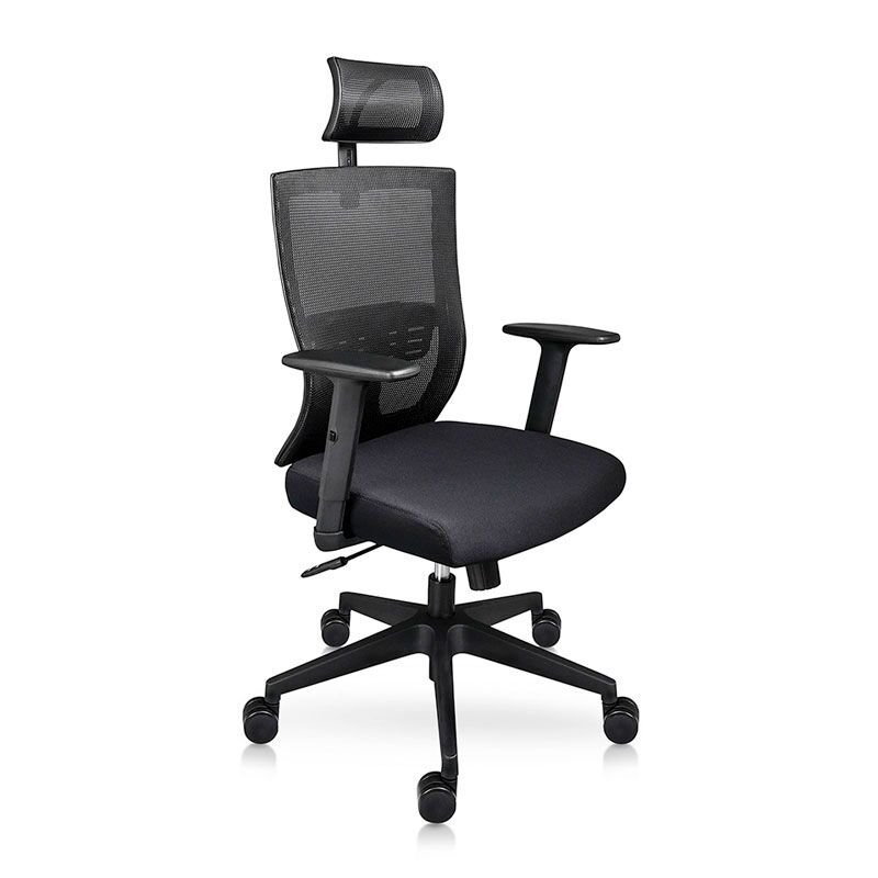 Brazos fijos de polipropileno en forma de t. Base de nylon de 26″con rodaja de nylon de 60 mm. Mecanismo ejecutivo, con palanca para activar pistón y bloqueo de reclinamiento, pistón ejecutivo. Perilla de asiento tensora de reclinamiento.