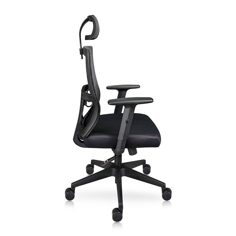 Respaldo estructura de polipropileno con fibra de vidrio, tapizado en malla y con soporte lumbar de polipropileno ajustable en altura. Cabecera estructura de polipropileno con fibra de vidrio, ajustable en altura. Asiento con espuma estándar espesor de 7.5cm x 35kg/m3 de densidad, tapizado en tela.