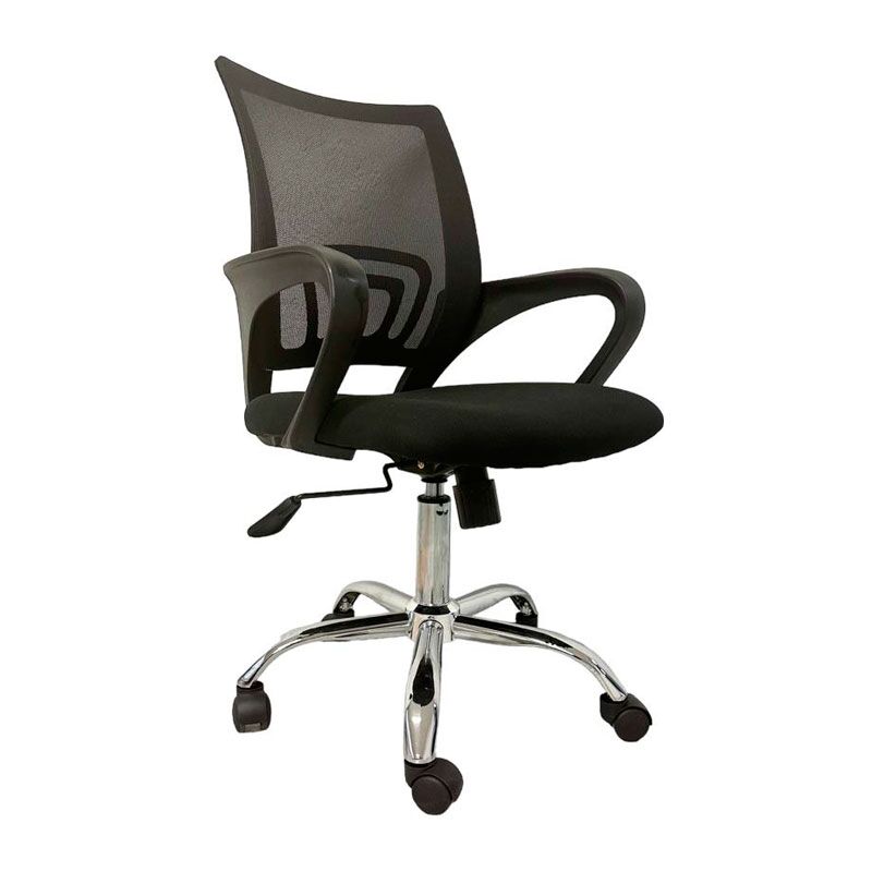 Respaldo en polipropileno tapizado en malla con soporte lumbar fijo. Asiento con espuma tapizado en tela mesh con espuma de 6 cm x 35 kg/m3 de densidad. Base cromada de 24″ con rodajas de nylon 50 mm. Brazos fijos de polipropileno. Mecanismo con palanca para activar pistón y bloqueo de reclinamiento. Perilla tensora de reclinamiento. Color negro.