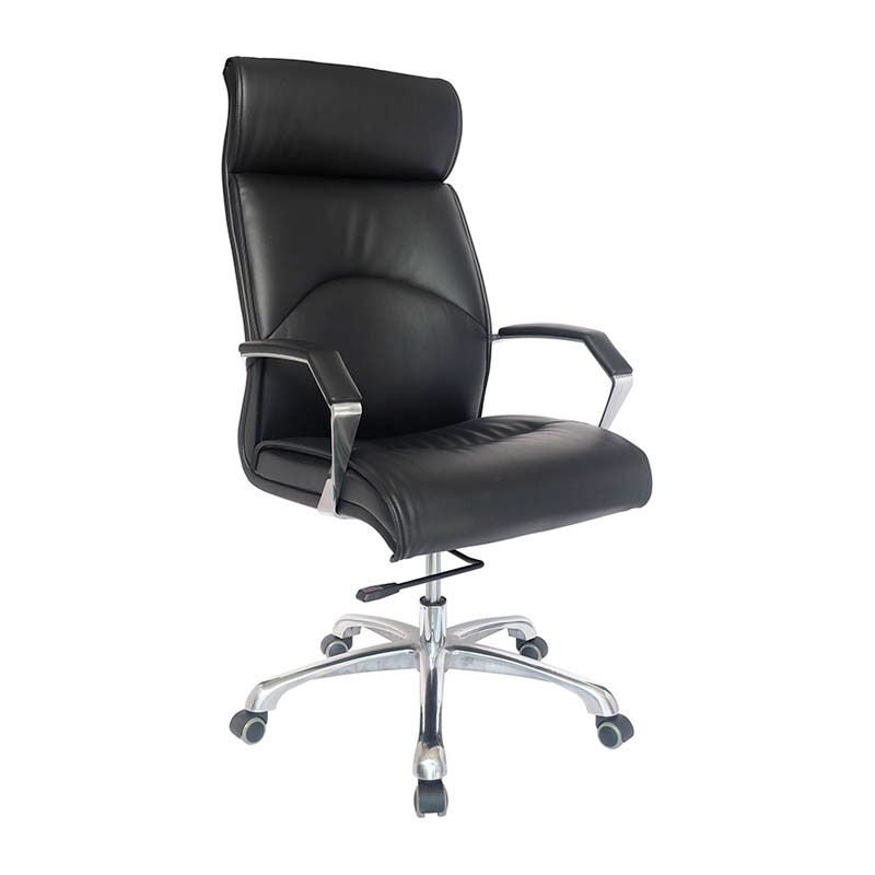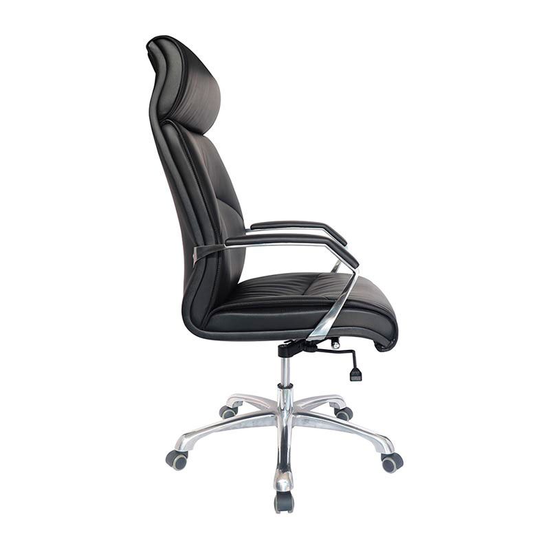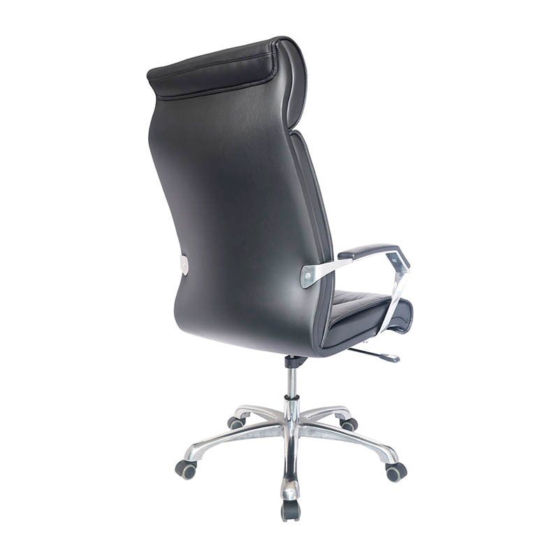 Brazos de aluminio fundido y pulidos con terminado natural, acojinados y tapizados en soft revolving leather color negro. Asiento y respaldo alto hule espuma laminado flexible con densidad de 50 kgs/m3 y alta resilencia, tapiz: en soft revolving leather de color negro.