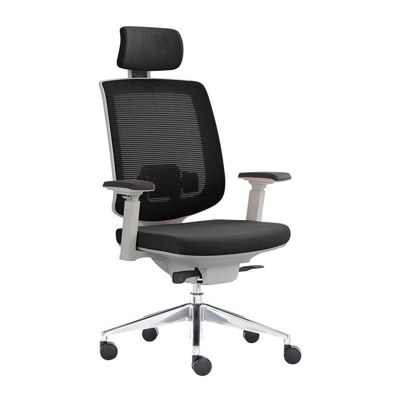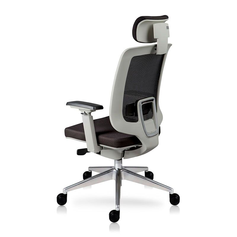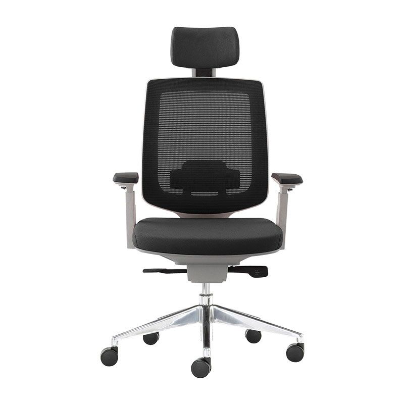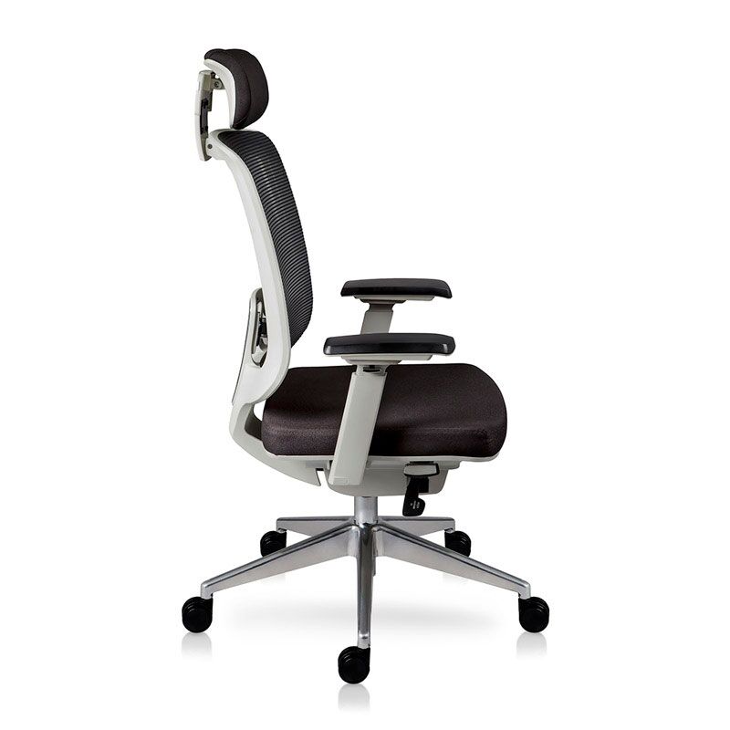 Brazos con codera en poliuretano suave con ajuste de 4 posiciones con Pad en PU. Base de aluminio de 27″ con rodajas de PU de 60 mm. Mecanismo synchro dos palancas (ajuste de altura y ajuste de reclinamiento), bloqueo automático 4 posiciones, pistón ejecutivo cromado rebasador de base.