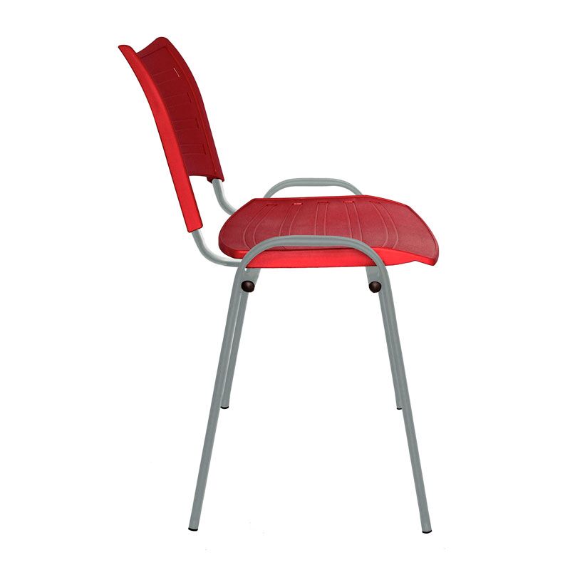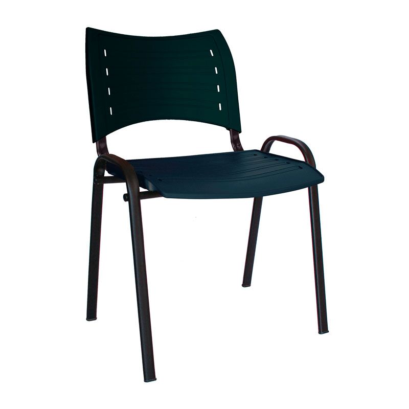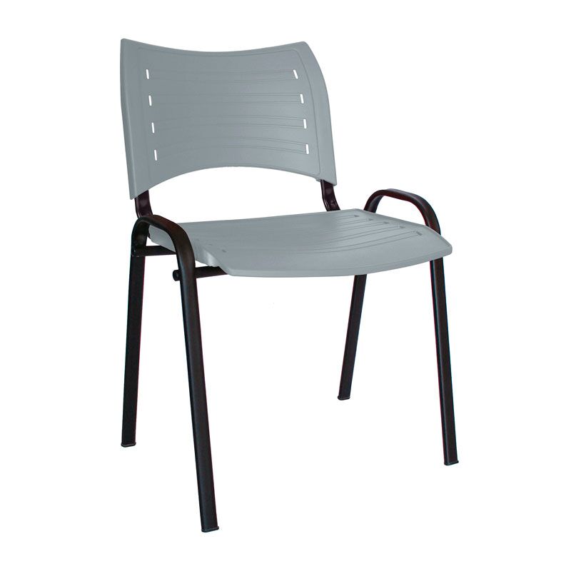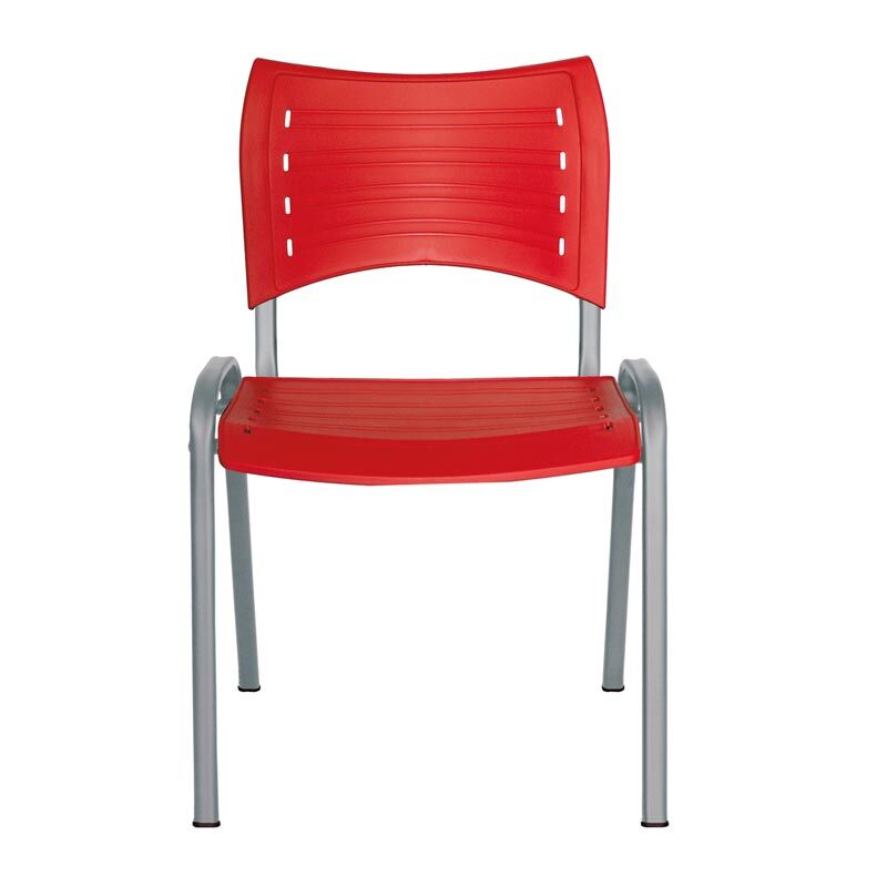 Estructura de acero tubular ovalado de 30 X 15 mm calibre 16, con acabado de pintura electrostática color negro o gris. Asiento y respaldo en dos piezas en polipropileno de alta resistencia y duración. Colores: negro, gris, verde, rojo, azul, blanco, berenjena, gris cálido o naranja.