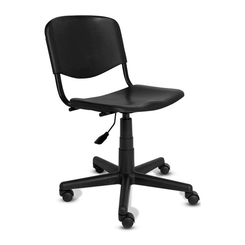 Base de estrella de 5 puntas en nylon de 22”. Mecanismo de tubular ovalado y ajuste de altura. Asiento y respaldo de polipropileno moldeado ergonómicamente.