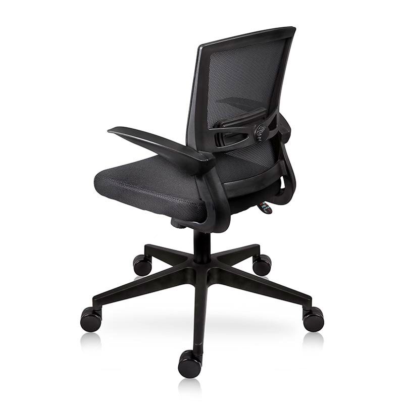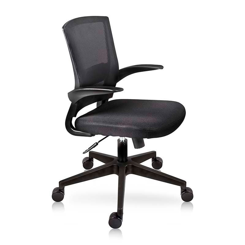 Respaldo tapizado en malla con almohadilla lumbar ajustable en profundidad y tapizada en tela mesh. Asiento con espuma estándar espesor de 4cm x 35kg/m3 de densidad, madera del asiento de 12 mm de espesor, tapizado en tela mesh. Brazos de polipropileno sujetos al respaldo, ajustables en posición vertical como opción para ocultarlos. Base de nylon de 26″ con rodajas de nylon de 60mm. Mecanismo ejecutivo (ajuste de altura y bloqueo de reclinamiento), pistón ejecutivo y perilla de asiento tensora de reclinamiento. Color negro.