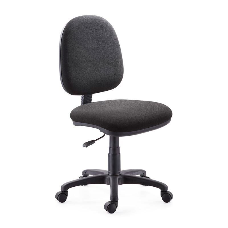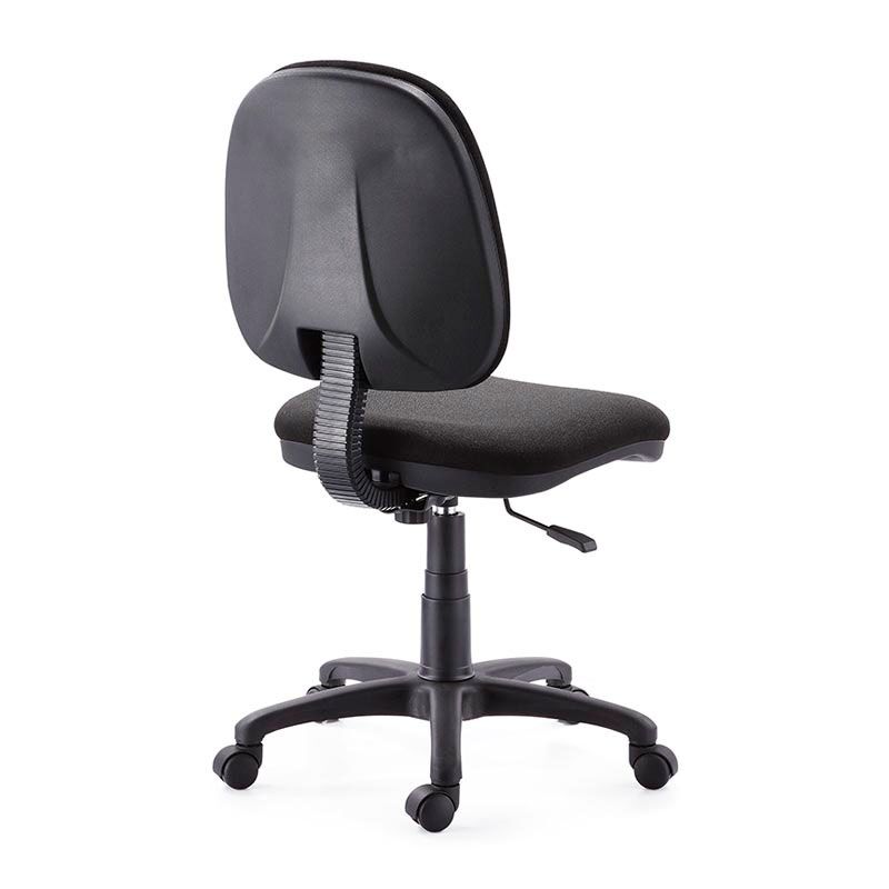 Silla secretarial con respaldo medio tapizado en tela Cancún con espuma de 5 cm x 20 kg/m3 y tapa e interno en polipropileno. Asiento con interno de madera, tapizado en tela Cancún con espuma de 6 cm x 24 kg/m3 y tapa de polipropileno.