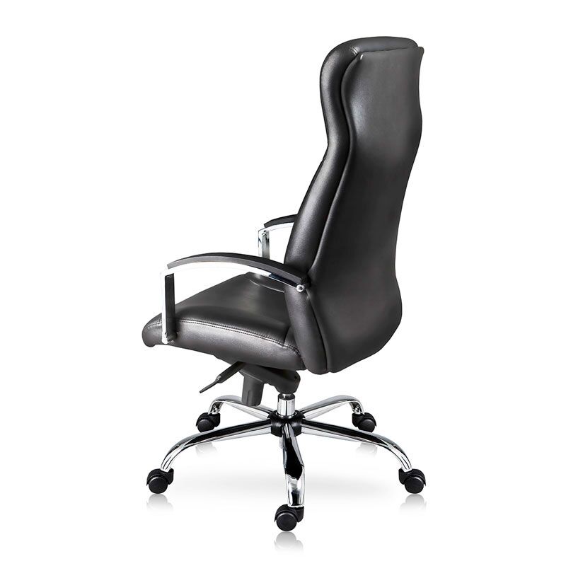 Mecanismo de rodilla, con palanca para ajuste de altura y palanca para ajuste de reclinamiento, perilla con ajuste de tensión. Base cromada de 27” con rodajas PU. Tapiz: frente en piel vacuno de alta calidad, parte trasera en vinil.